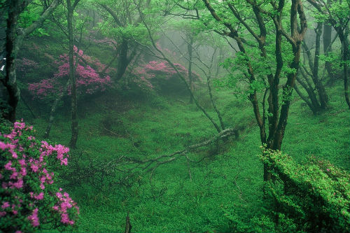 霧中で森の美しさに惹かれ、なかなか帰路につけません。(大幡山)